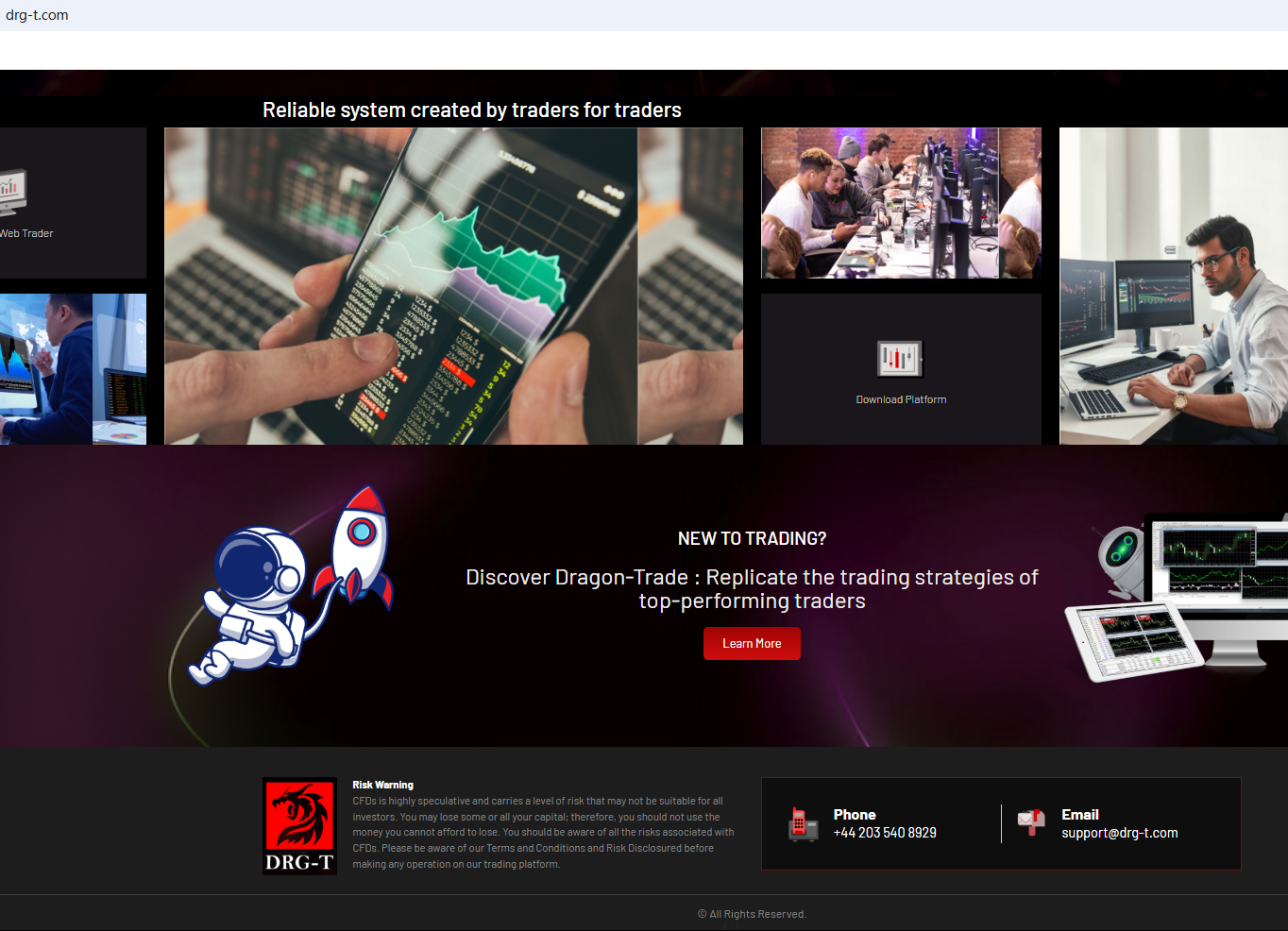 其网站宣称其成立于2011年,但经核实,其域名于2024年才正式成立。这显然是非常不可信的行为。而且,其显示的电话号码区号+44是英国区号。经调查,在金融行为监管局(FCA)中未找到任何匹配信息。此外,我们发现新西兰金融市场管理局(NZ FMA)对DRG T(又名Dragon Trade)发出警告,怀疑其涉及诈骗。本质上,DRG T(又名 Dragon Trade)不受任何监管机构监管。将投资者的资金委托给该公司风险极高,因为缺乏法律保障措施来保障资金安全。DRG T(又名 Dragon Trade)似乎是一个骗局。