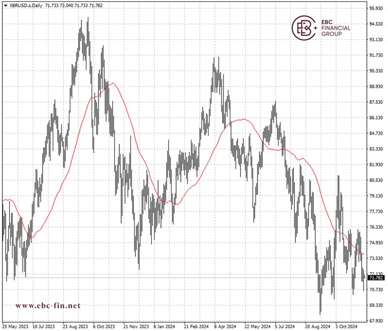 Brent crude looks set to retest the solid support around $70. If the level still holds, the triple bottom chart will bolster the case of a rally above 50 SMA.