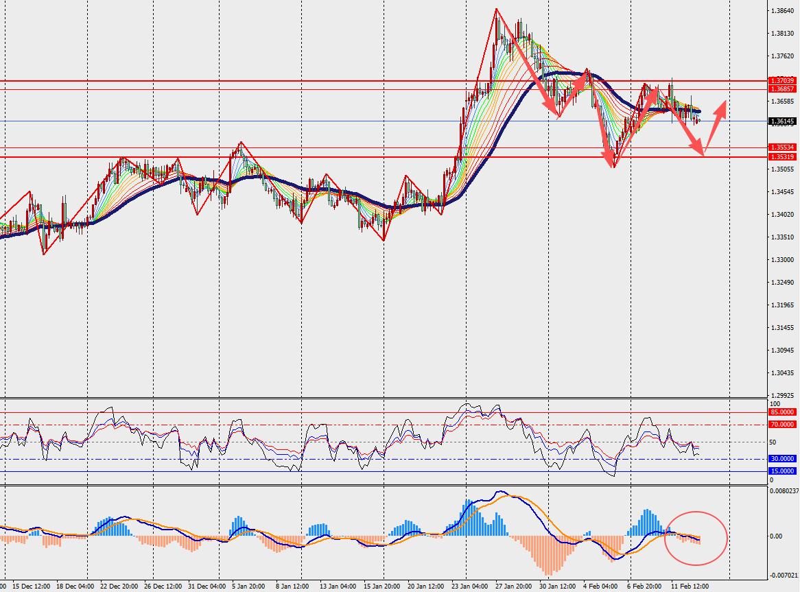 第一阻力位:1.3670                       第一支撑位:1.3560
