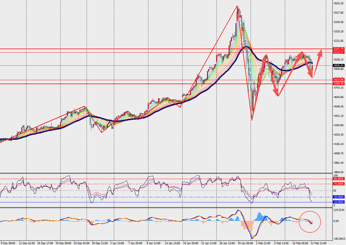 基本面:周四的美国股市经历了一场由人工智能引发的血案。纳斯达克指数重挫2%,标普500指数跌超1.5%,道指同样未能幸免。追加保证金通知不断推向投资者,那些在股市重仓、杠杆率过高的交易者为了满足保证金要求,不得不抛售一切可变现的资产。黄金,即便拥有避险光环,在这一刻也被迫被卖出从而提供流动性。