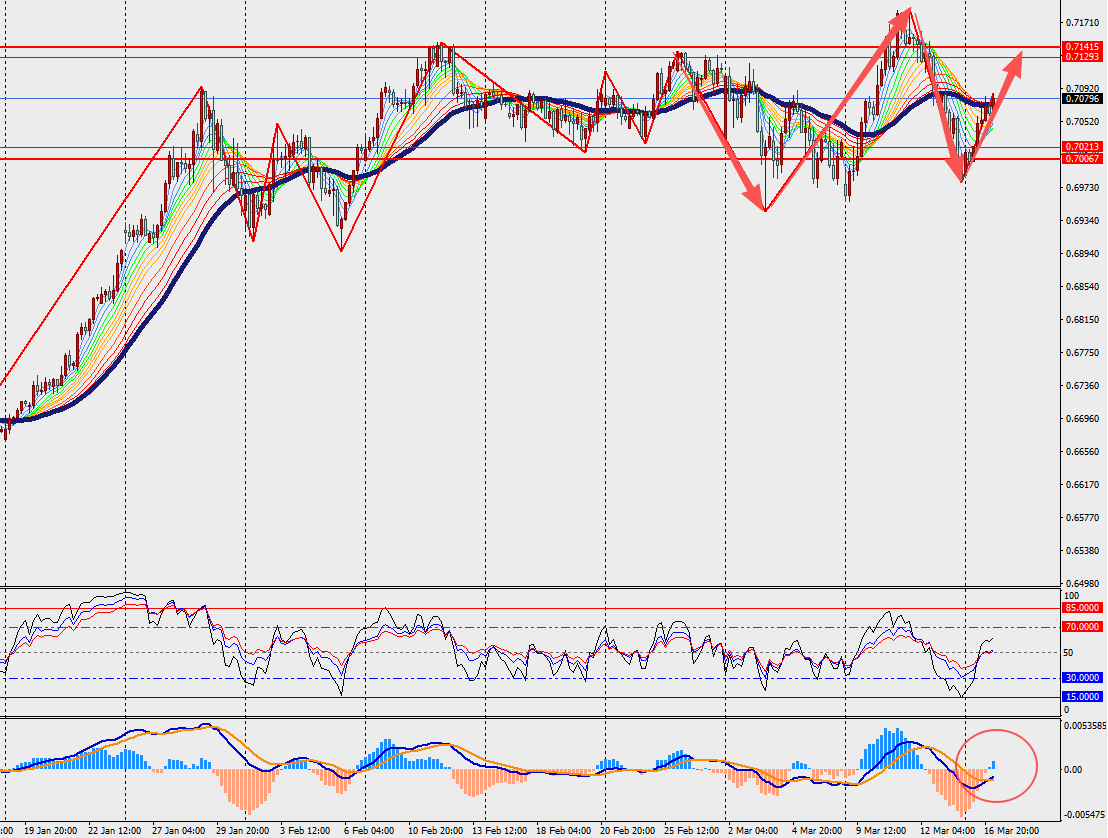 第一阻力位:0.7120                        第一支撑位:0.7030