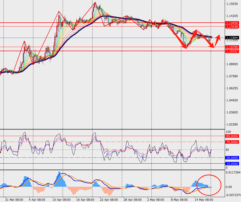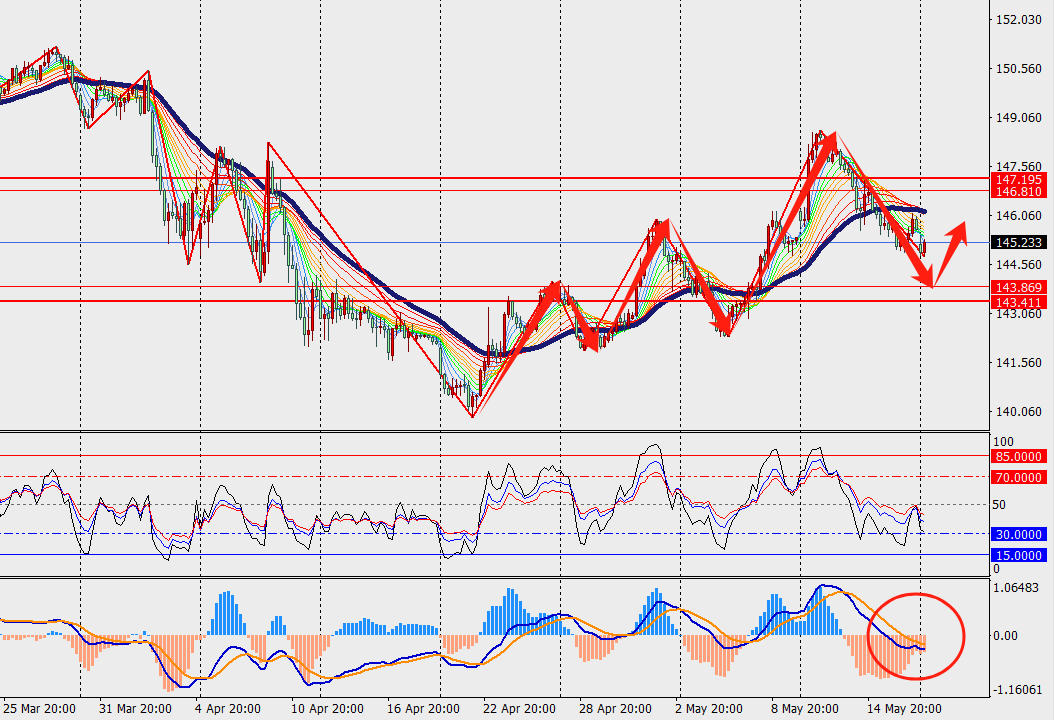 技术面:美元兑日元H4级别下跌反弹,但依旧在48日多空分界线下方运行。此外,MACD双线和量能柱在零轴附近收敛。日本本季度经济可能再次萎缩,这可能使日本陷入技术性衰退。