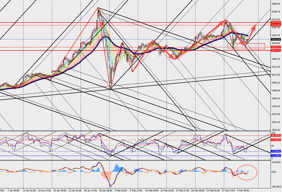 黄金H4级别震荡反弹,MACD双线和量能在在零轴下方扩张。结构性因素仍在支撑金价,包括新兴市场央行持续购金、ETF长期偏多以及矿产供应稳定。2022年俄乌冲突初期的走势,黄金先涨后跌,本轮行情延续这一模式。短期内黄金仍可能震荡偏弱,需密切关注美国2月非农就业和CPI数据。