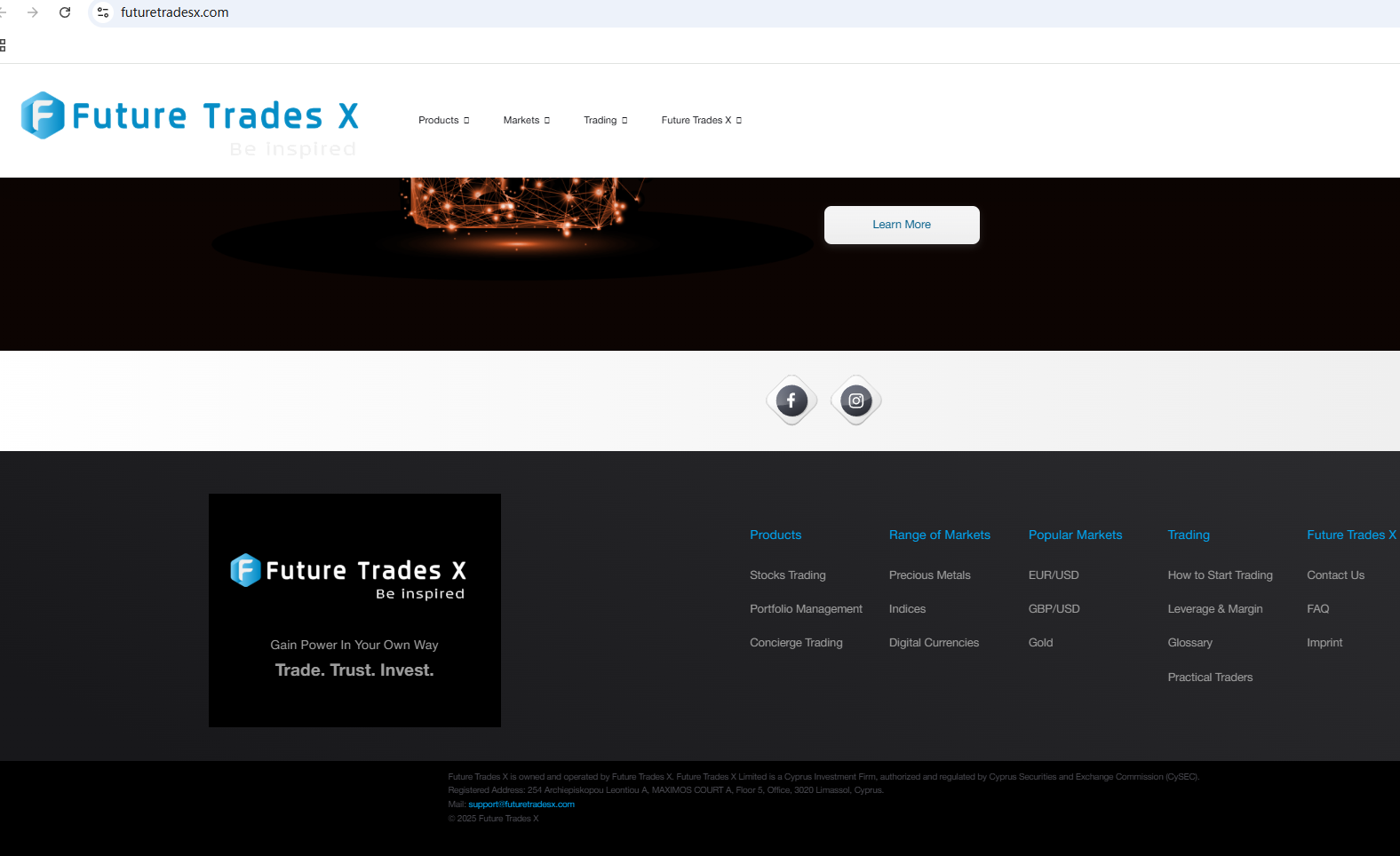 根据其网站所述,该公司声称受塞浦路斯证券交易委员会 (CySEC) 监管,但经调查,我们发现 CySEC 已对 Future Trades X 发出警告,认为该公司可能在未经授权的情况下提供金融服务或产品。