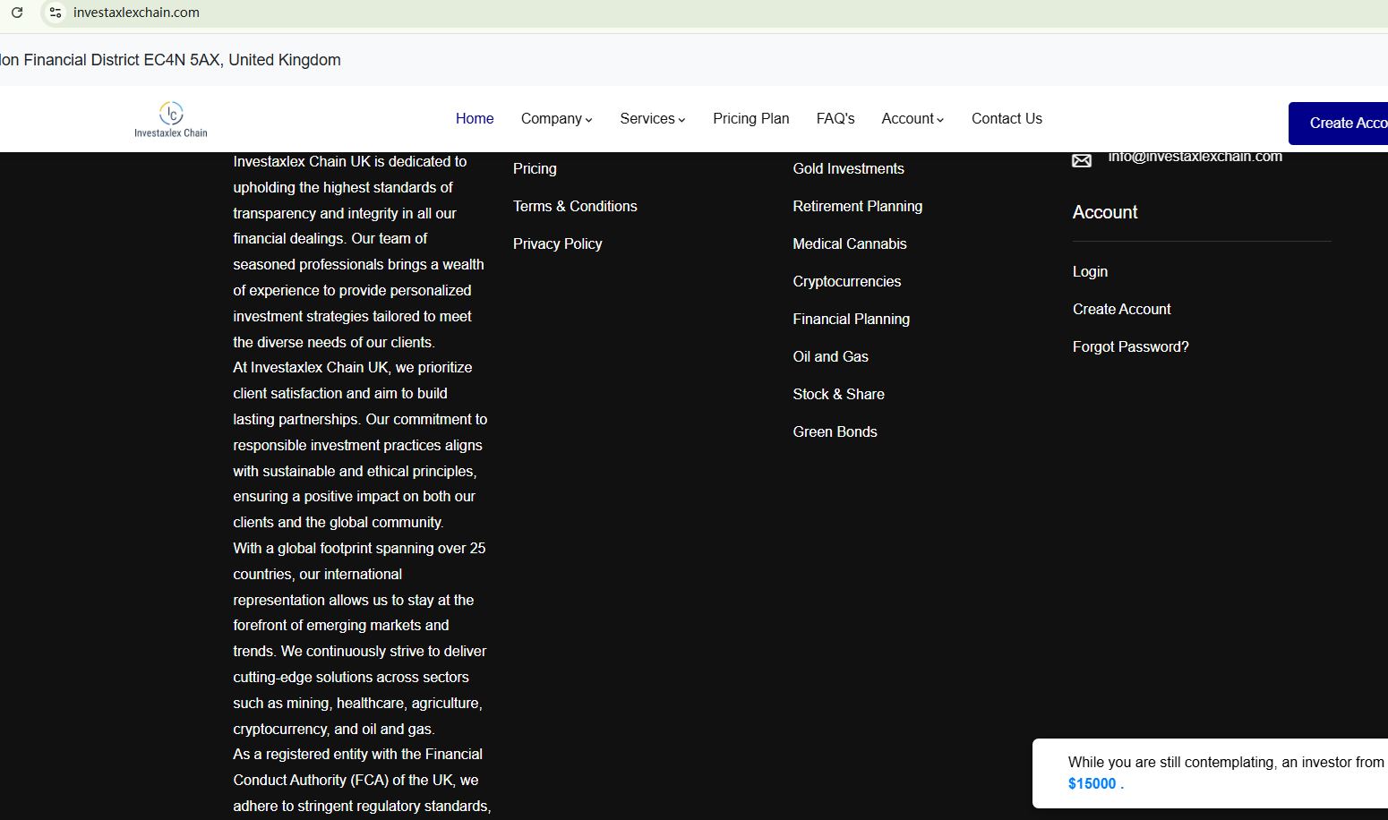 从本质上讲,Investaxlex Chain UK 不受任何管理机构的监管。将其委托给投资者的资金是高风险的,因为没有法律保护措施来保护资金。 Investaxlex Chain UK 似乎是一个骗局。