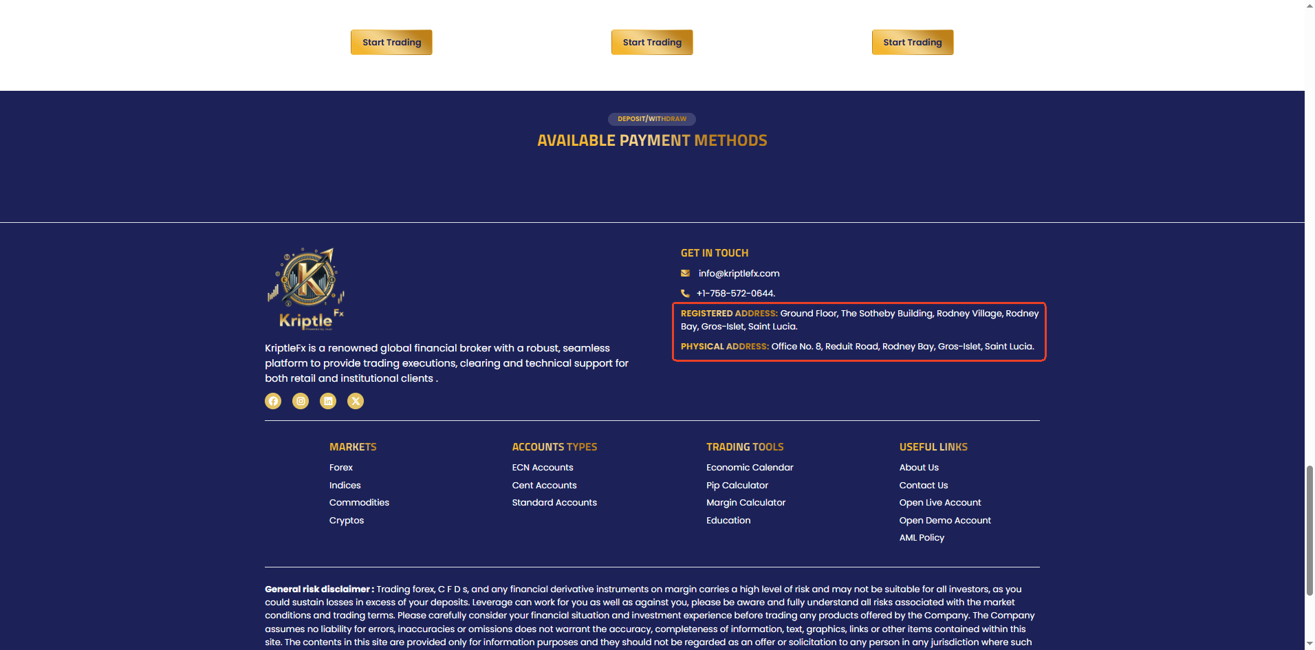 KriptleFx在其网站上未显示任何监管信息,仅声称在圣卢西亚注册。虽然我们可以确认一家同名公司已在圣卢西亚国际金融中心(IFC)注册,但该注册仅授予其国际商业公司(IBC)地位,并不构成有效的金融牌照。IFC既不监管也不颁发外汇交易牌照。