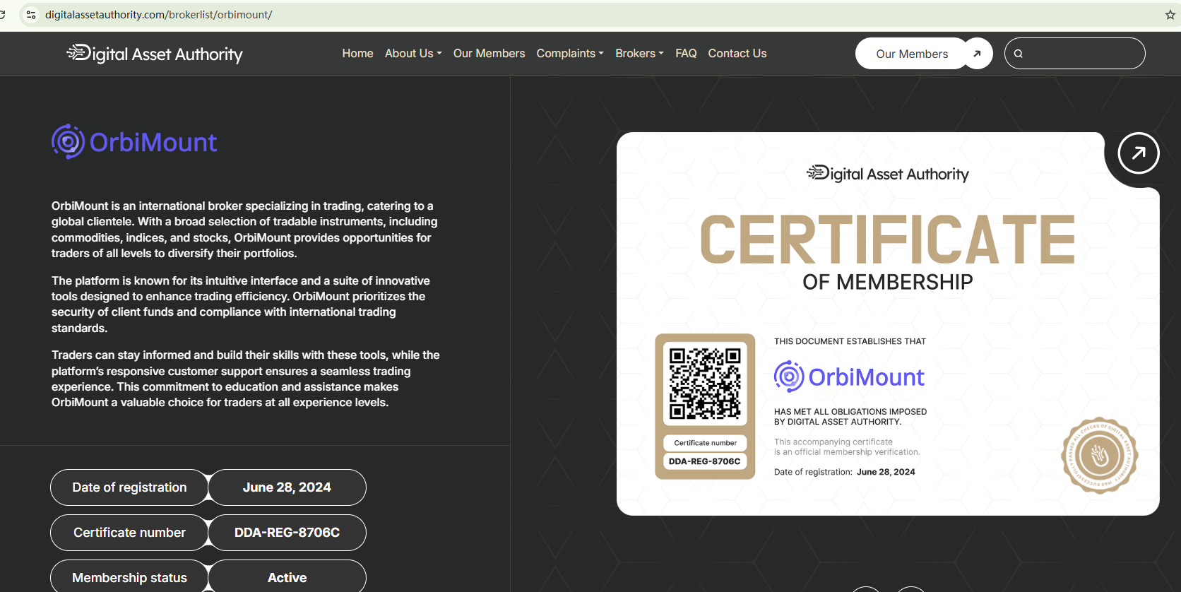 Orbimount 仅依赖一个声称由数字资产管理局授权的证书,而该机构似乎根本不存在,以误导毫无戒心的投资者相信其真实性。这种行为是欺诈。此外,意大利公司与交易委员会(CONSOB)已命令对 Orbimount 进行屏蔽,因为其在意大利提供金融服务是非法的。
