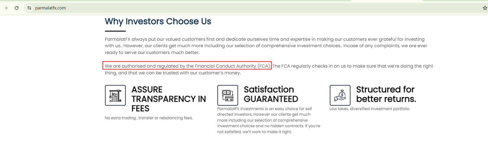 ANSWER It is strongly recommended to avoid engaging with ParmalatFX.The ParmalatFX website bears a striking resemblance to those fraudulent platforms previously flagged by us. The purported number 07366565, issued by the Companies House (CH), actually pertains to Edata Matters Limited, a company that has been dissolved.Additionally, ParmalatFX claims to be authorized and regulated by the Financial Conduct Authority (FCA). However, the FCA has issued a warning against ParmalatFX, listing it as an unauthorized entity within the UK and advising caution.Given that ParmalatFX lacks regulation from any recognized authority, investing with them is fraught with danger, as there are no established legal protections for investors' funds. To mitigate such risks, investors are strongly advised against using ParmalatFX and instead opt for fully regulated brokers.