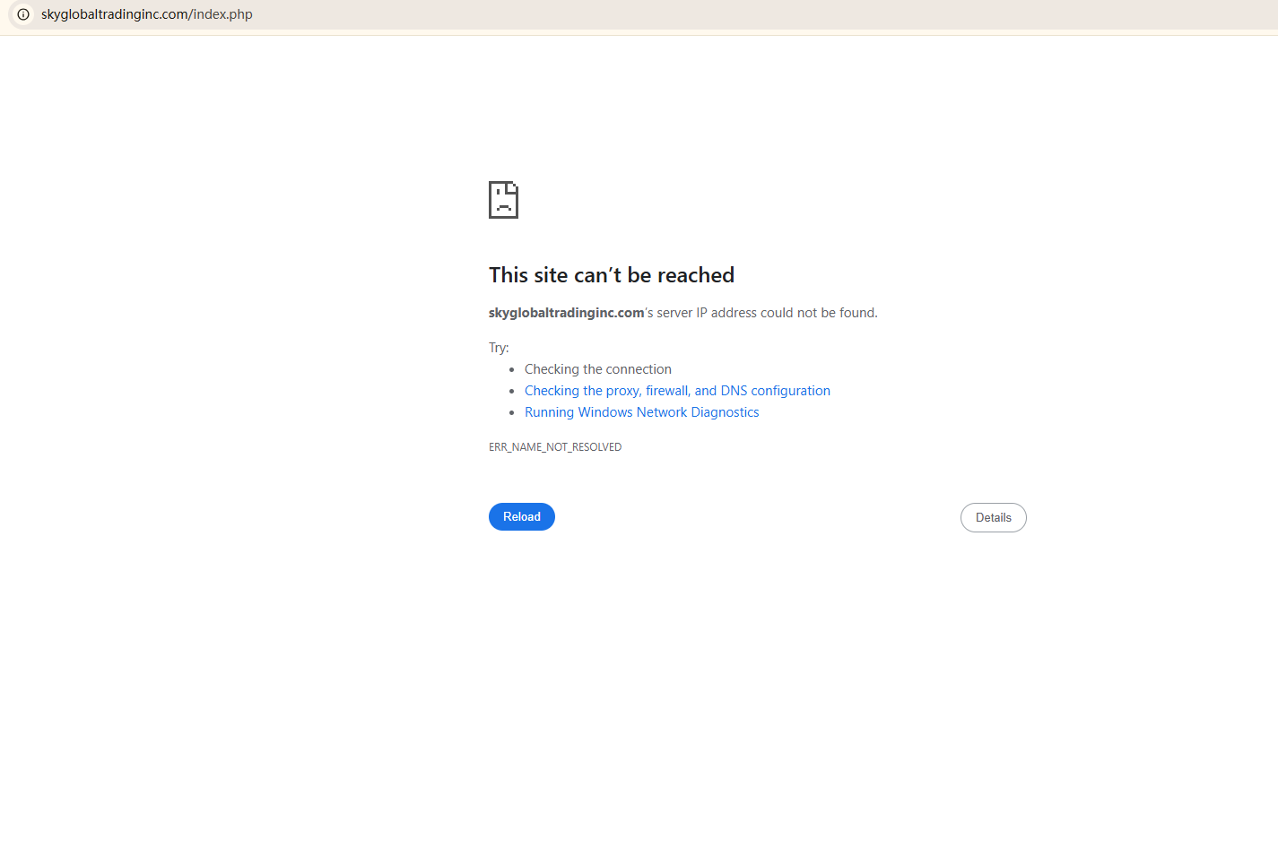 BrokersView发现域名“https://skyglobaltradinginc.com/index.php”目前无法访问。这被普遍视为一个重要的警示信号,因为经纪商网站的暂停访问通常预示着潜在的监管或运营问题。