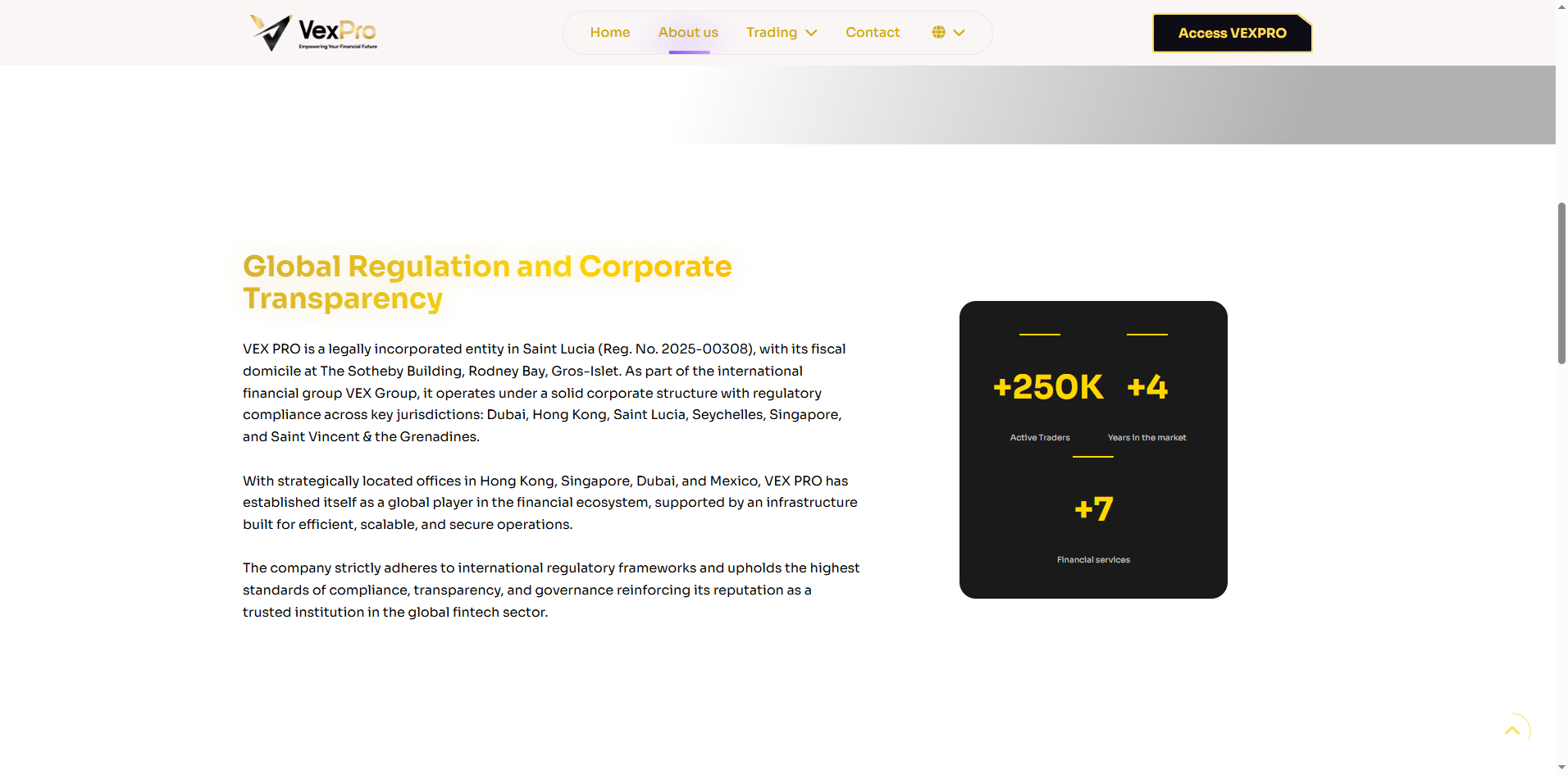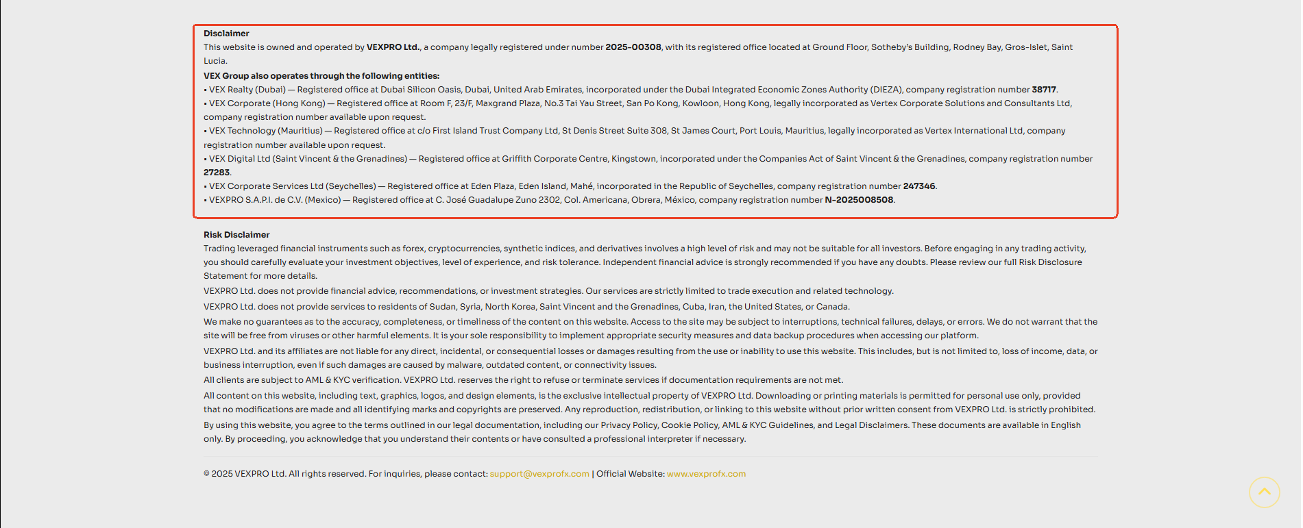 In effect, VexPro operates without any legitimate regulatory oversight, which poses serious risks to your funds and trading security.