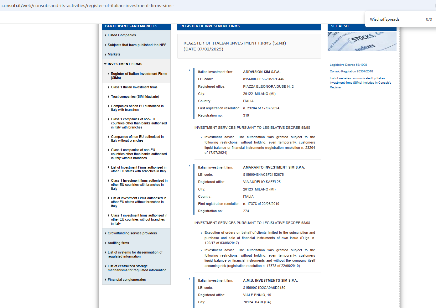 该公司网站声称其受多家监管机构监管。但经调查,在德国联邦金融监管局(BaFin)、法国金融市场管理局(AMF)和意大利公司及证券交易委员会(CONSOB)均未找到与其相符的信息。