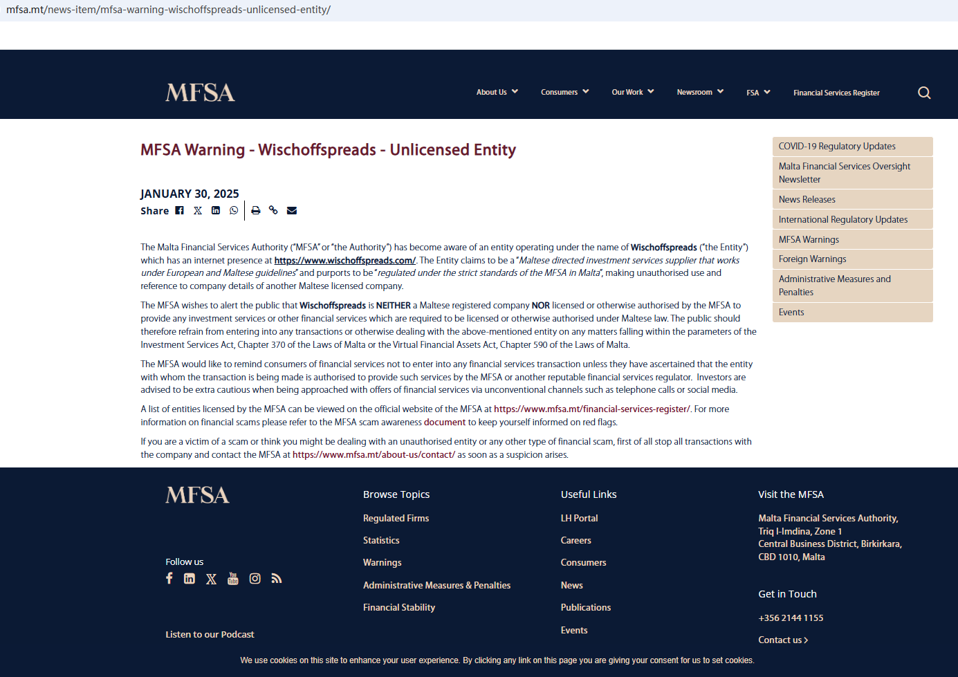 • 2025-01-29 MFSA发布针对Wischoffspreads的警告