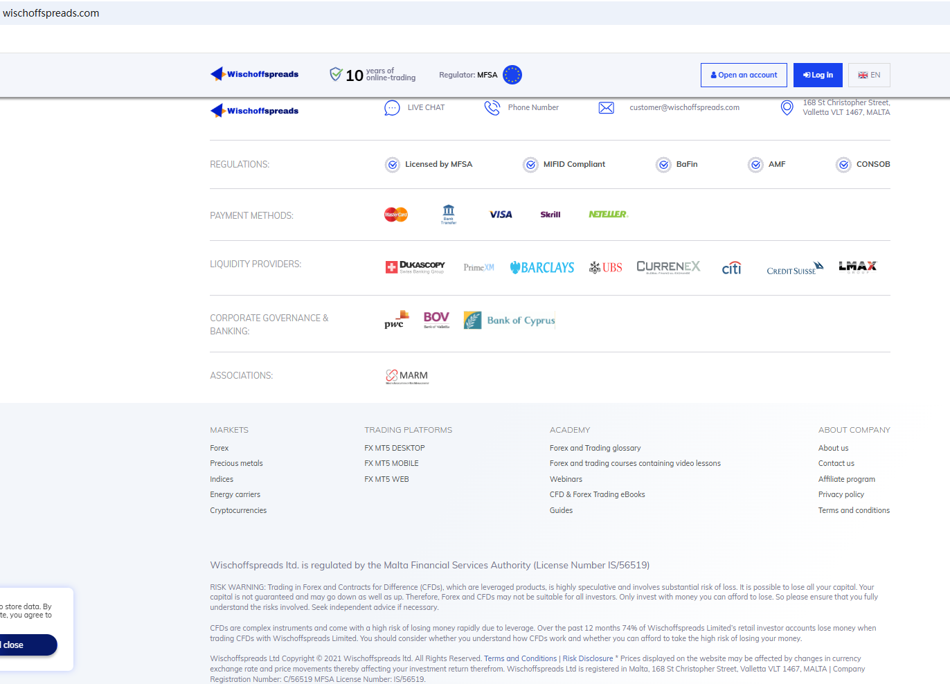 此外,马耳他金融服务管理局 (MFSA) 还对 Wischoffspreads 发出警告,称该经纪商既不是马耳他注册公司,也没有获得 MFSA 的许可或授权,无法提供根据马耳他法律需要获得许可或授权的任何投资服务或其他金融服务。