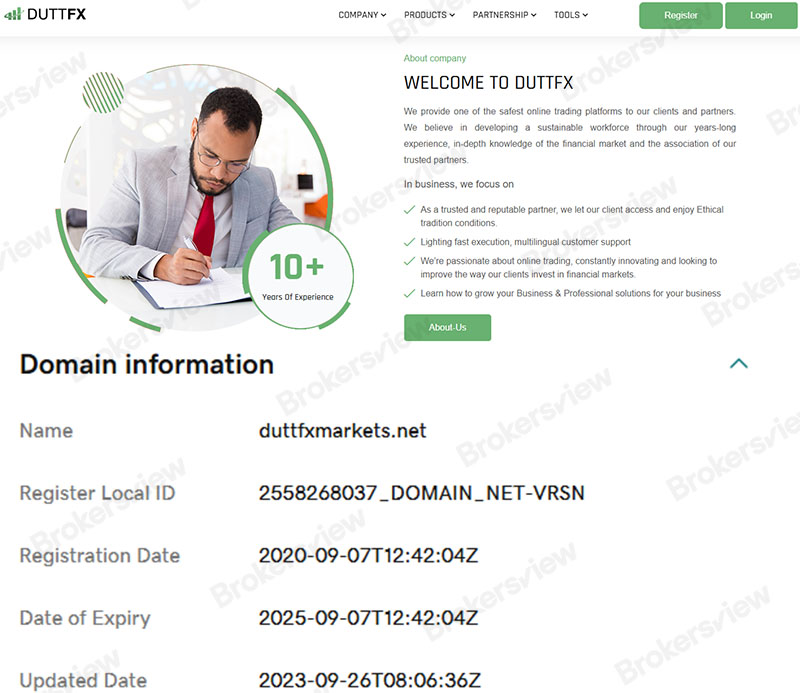 DUTTFX强调其在外汇行业拥有10多年的经验,但其域名在2020年才注册,使这一言论遭受严重质疑。该公司还宣传自己是“值得信赖、信誉良好的合作伙伴”,提供“最安全的在线交易平台之一”,这与客户的反馈形成鲜明对比。