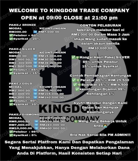 Telegram上的投资骗局不断涌现,另一名交易者向BrokersView提交了投诉Kingdom Trade的类似案例。BrokersView致力于为交易者提供对外汇经纪商的全面了解。