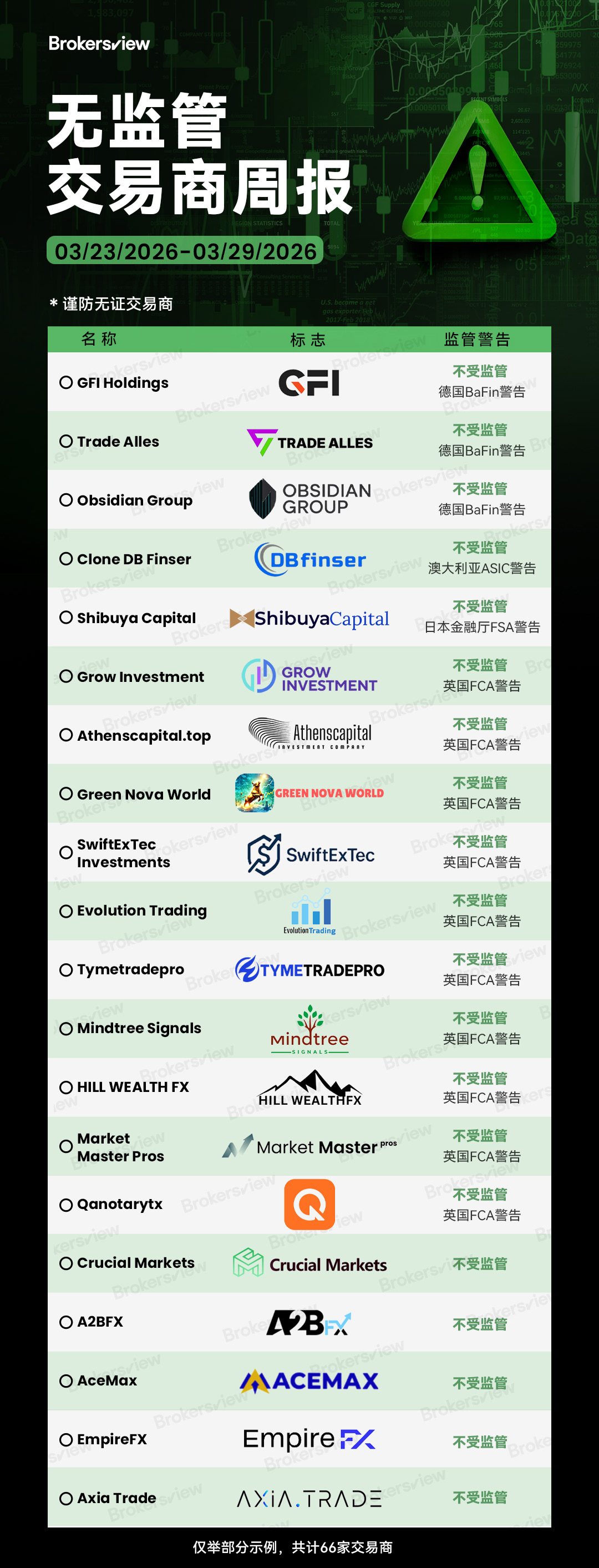 BrokersView 于2026 年 3 月 23 日至 29 日期间报告的无牌交易商: