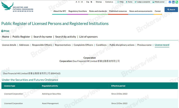 Doo Group 的子公司 Doo Financial HK Limited 已取得香港证券及期货事务监察委员会(HKSFC)颁发的第四类(就证券提供意见)和第九类(提供资产管理)牌照,标志着集团发展过程中的又一里程碑。