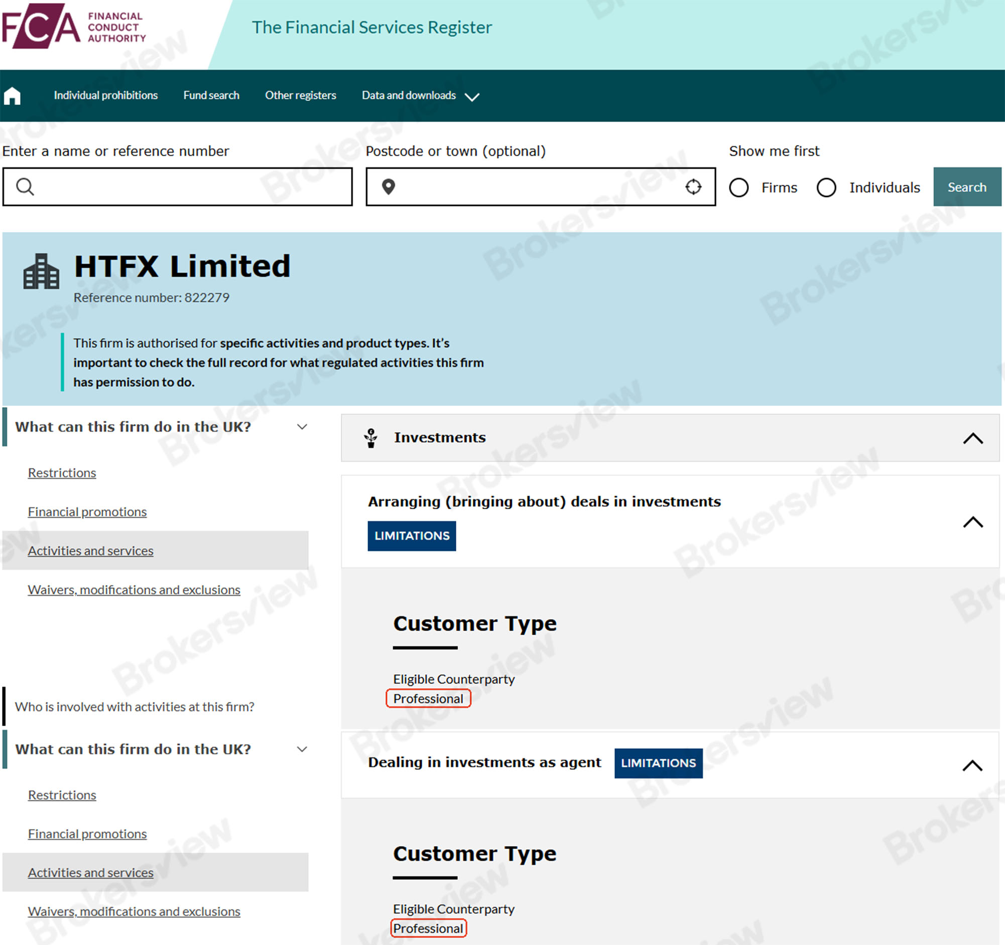 BrokersView的调查显示,HTFX Limited主要服务于专业客户,这在其FCA牌照的“业务活动与服务”部分有明确标明。与此同时,HTFX的CySEC授权将受监管的业务活动限制在欧盟范围内。这表明,面向大多数全球客户提供服务的实体可能是HTFX VU Limited,而该实体持有的是VFSC颁发的离岸牌照,监管力度较弱且投资者保障非常有限。