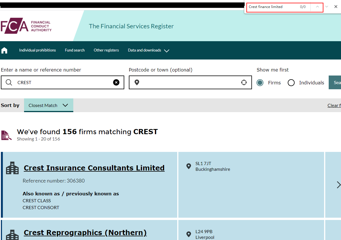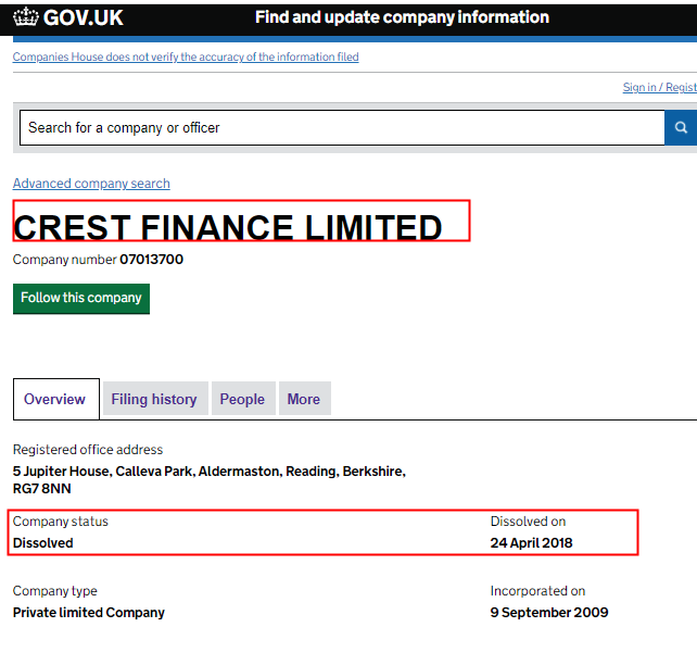 We found that Crest finance limited used to be a registered firm with the Companies House (CH). However, the company status is abnormal and and the official company status is dissolved. Moreover, CH is merely the UK's registrar of companies, not the regulator that approves licenses for brokers in the UK. The truth is that we have found no regulatory information about Crest Financial on the UK Regulator's (FCA) online registry. So Crest finance limited is not regulated by any financial regulator. That means investors' funds in this broker are unsafe and cannot be protected by any laws. Therefore, it is a complete scam.