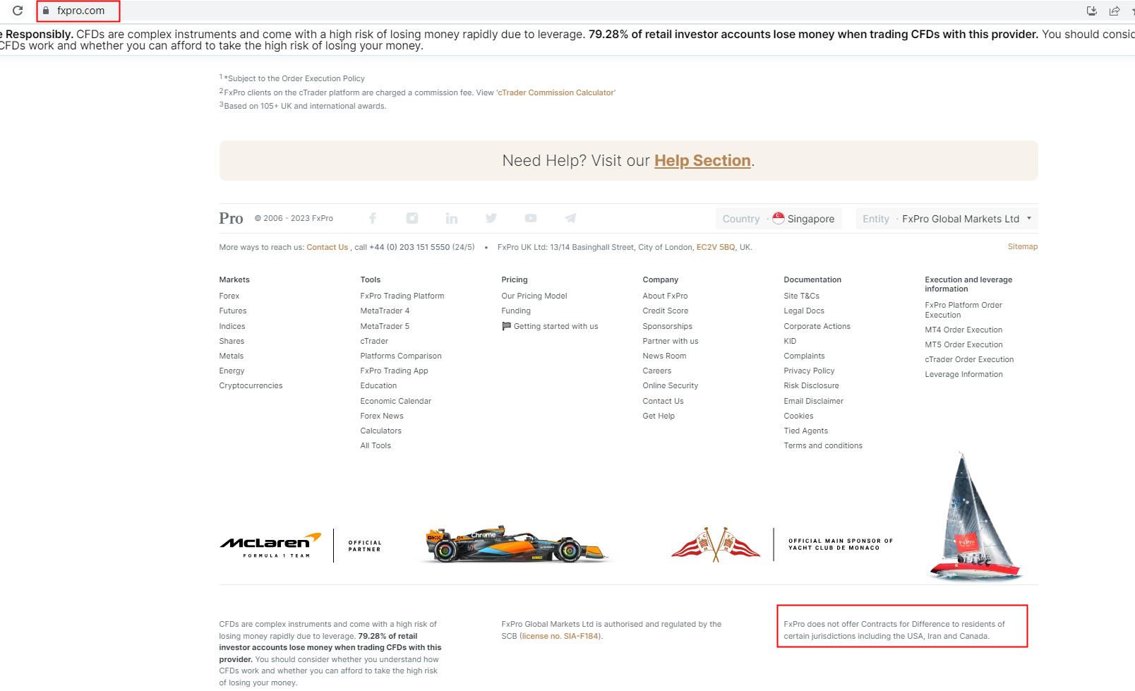 The answer of "does fxpro accept us clients" lies at the bottom of FxPro's homepage, saying they don't offer services to residents of the US. For more details about this broker, please refer to our full review of FxPro.