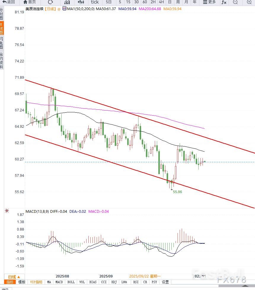 如果WTI能突破60.5—61美元区域,上方目标将指向62.3美元的压力带;相反,一旦跌破60美元整数关口,油价可能在58.5美 寻找下一支撑。