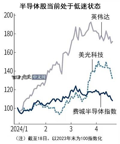 令市场失望的是台积电股价的下跌。该公司18日公布的2024年1~3月财报超出市场预期。然而,股价在美国市场下跌5%,在19日的台湾市场下跌7%,结果半导体股整体继续被抛售。