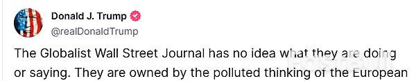 同样,作为被爆料者的特朗普迅速进行了激烈回应。他在Truth Social上严厉批评 WSJ,称该媒体的报道陈旧且充满敌意,认为这是针对美国的恶意攻击。他还将矛头指向该媒体的欧洲倾向,称其受制于试图削弱美国的外国势力。