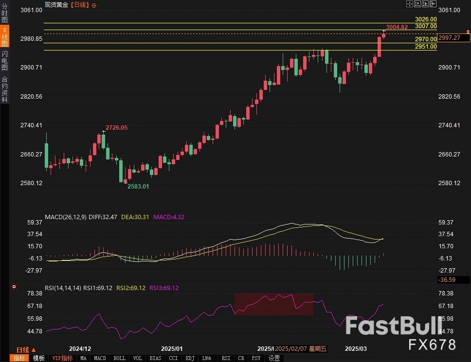 北京时间周五(3月14日)欧洲时段,现货黄金价格在突破3004美元/盎司的历史高位后快速回落至2996美元附近。这一戏剧性波动恰逢美国宣布对欧洲葡萄酒征收200%关税的时点,单周2.5%的涨幅背后,折射出全球资本对地缘政治风险定价机制的深刻转变。