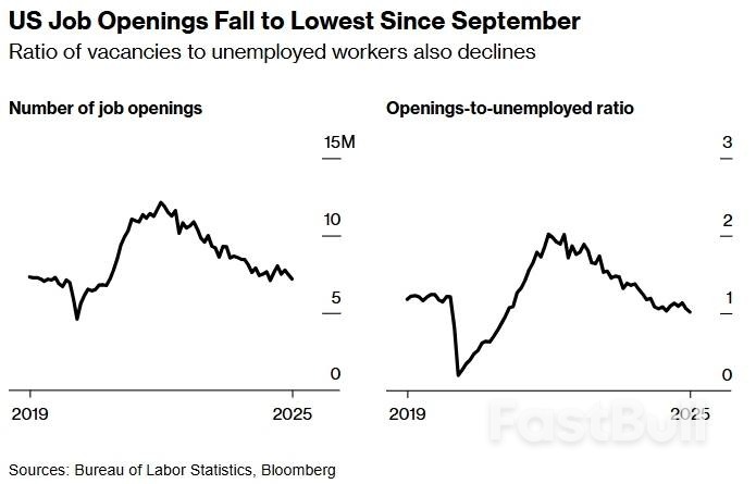 同时公布的另一份数据显示,美国3月的职位空缺数降至去年9月以来的最低水平,表明在经济不确定性增加的情况下,劳动力需求减弱。