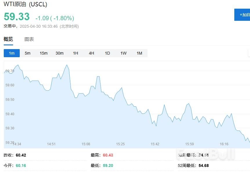 WTI原油日内跌幅达2.0%,报59.2美元/桶。