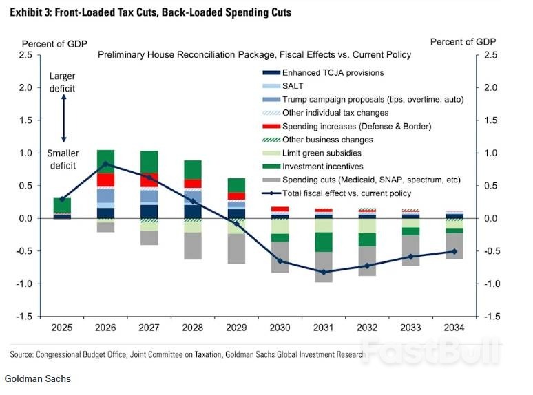 当然,该行表示,情况仍可能发生变化。例如,州和地方税政策的扣减可能变得更慷慨,或者联邦支出削减可能比法案当前草案中预定的时间提前发生。