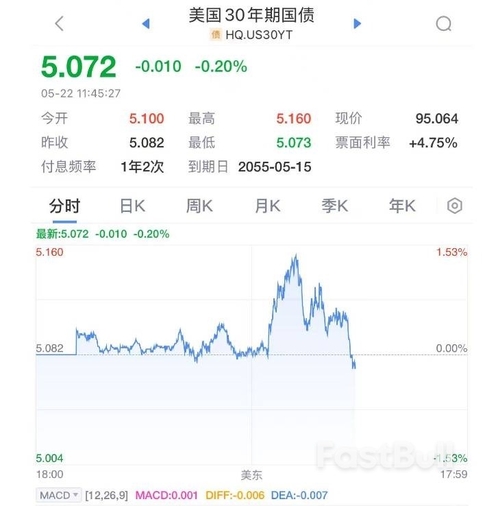 在外界对美国财政前景日益担忧之际,长期美债周三继续遭到抛售,此前20年期国债的拍卖需求疲软。30年期国债收益率升至5%以上,创2023年以来新高。