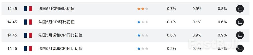 法国5月通胀的大幅回落主要受到能源成本和制造业价格双重拖累。数据显示,能源成本同比下降8.1%,制造业商品价格下跌0.2%。食品通胀出现小幅上升。