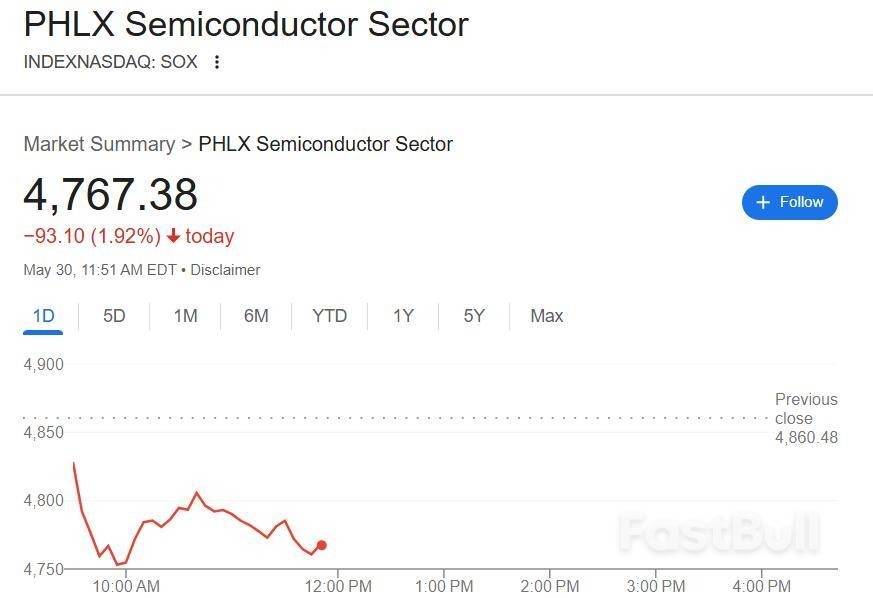 芯片股也总体跌幅扩大。费城半导体指数盘中跌近2%,银行指数跌0.6%。