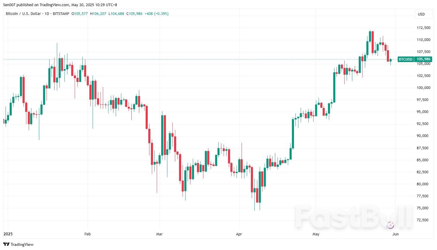 5月30日,比特币(BTC)一度跌至104688美元,创一周多新低。