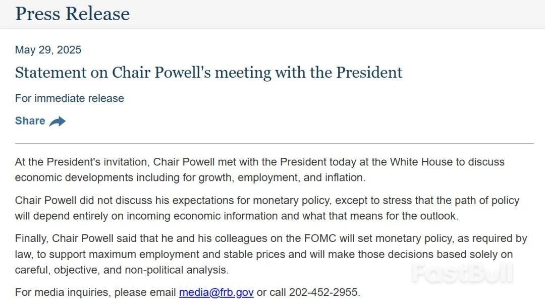 会晤后,美联储迅速发布了一份措辞罕见强硬的三段式声明,强调其在货币政策制定中的独立性与非党派角色。这一声明被外界广泛解读为对特朗普近期持续施压要求降息的明确回击。
