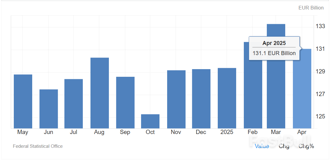 作为欧洲最大的经济体,德国在第一季度实现了增长,这得益于出口和工业在预期的美国关税之前提前发货,但这种影响在4月份开始逆转,当时德国出口环比下降了1.7%,降幅超过分析师平均预期的0.7%。