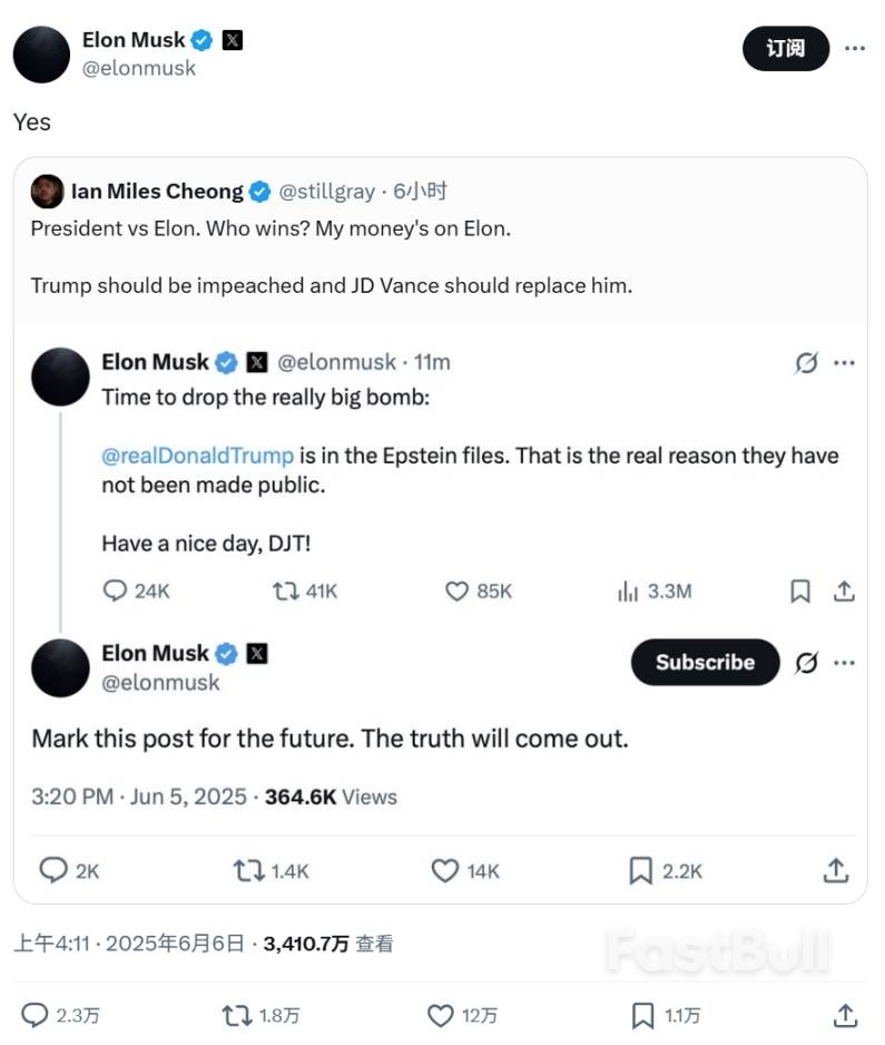 地球上最有钱与最有权的人隔空互怼,造成美股以及加密市场动荡。