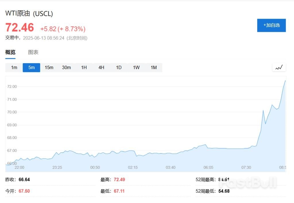消息后,原油及避险资产明显拉升,美国、日韩等多个股市下挫。