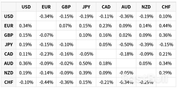 热图显示了主要货币相对于其他货币的百分比变化。基础货币从左列中选取,而报价货币从顶部行中选取。例如,如果您从左列选择 日元 并沿着水平线移动到 美元 ,则框中显示的百分比变化将表示JPY (基数)/ USD (报价)。