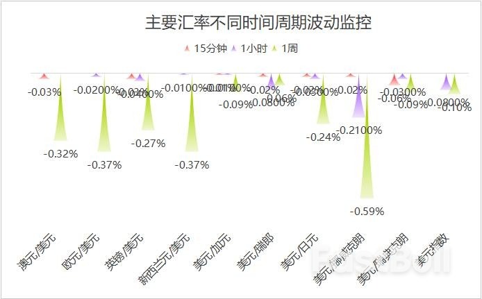 1天时间段的波动明显增大,特别是美元/日元(-0.24%)和美元/加元(-0.09%)。