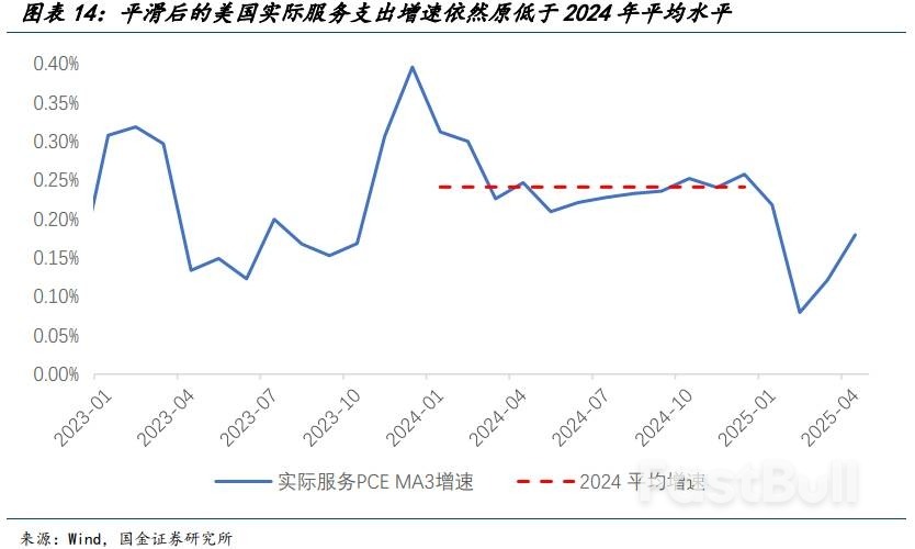 从结构上看,我们依然认为服务(消费)将会是美国经济中最敏感的环节,且有部分数据已经出现走弱迹象:例如,ISM非制造业PMI自去年6月来再次跌破50,而新订单分项跌至2022年12月以来最低水平。除软数据外,美国餐饮业的同店流量并未较年初明显好转(可以看作实际量的变动),实际PCE服务支出虽然近期波动较大,但平滑后的MA3增速仍明显低于2024年平均水平。
