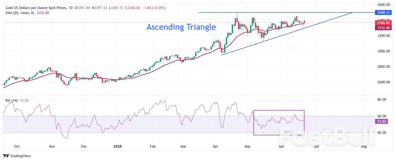 20日指数移动平均线(EMA)继续在3350美元附近为黄金价格提供支撑。