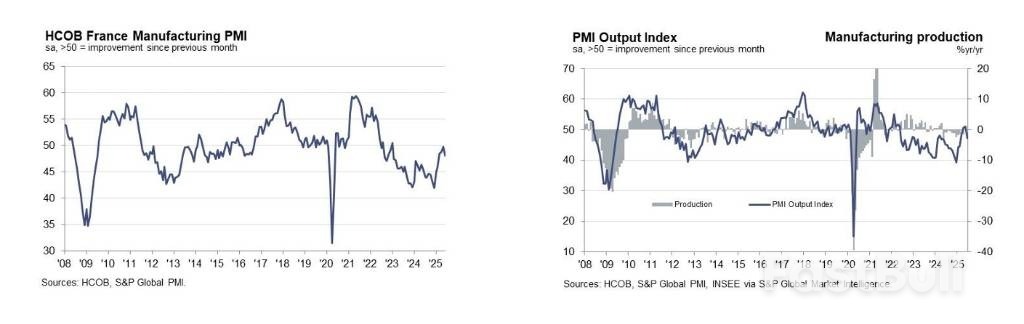 与此同时,德国制造业PMI升至34个月高位,新订单增长创39个月新高;法国制造业PMI跌至48.1,创下自2月以来最大跌幅,新订单的急剧收缩为制造业表现恶化的主因。