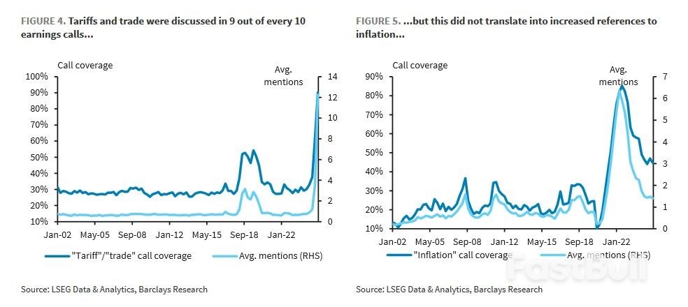 报告显示,对标普1500企业的财报电话会议的NLP分析发现,在2025年第二季度报告季节中,关税和贸易讨论占据了约90%的电话会议记录,远超2002年以来的历史水平。平均而言,每次电话会议提到"贸易"和"关税"超过12次。