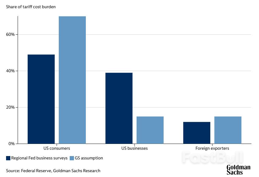 高盛首席美国股票策略师David Kostin在本周最新发布的一份报告中写道,“客户一直密切关注谁将最终承担关税的成本。”Kostin认为,企业将通过提高价格将70%的关税直接成本转嫁给消费者。不过,5月份美国核心通胀指标涨幅低于预期,一些近期的商业调查也显示,关税成本转嫁给消费者的程度可能有所降低。