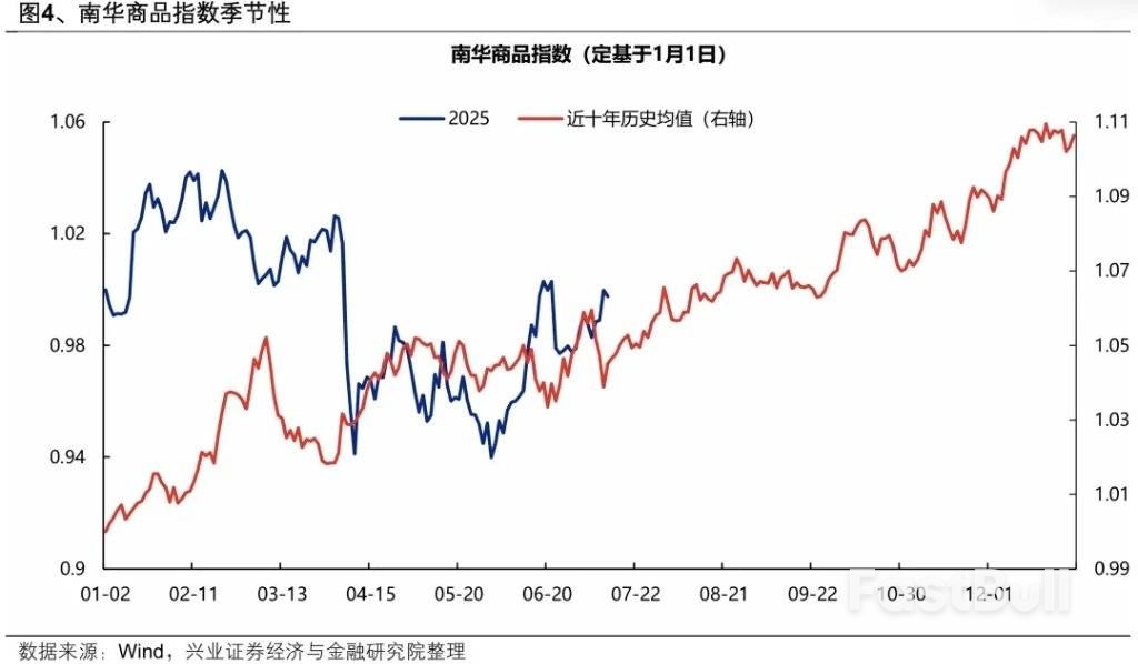 6月以来资源品价格自低点快速反弹,7月“反内卷"催化下继续上涨。6月,随着全球关税担忧缓和,叠加伊以冲突催化,南华商品指数自低点反弹超6%,7月“反内卷”催化下继续上涨超2%。