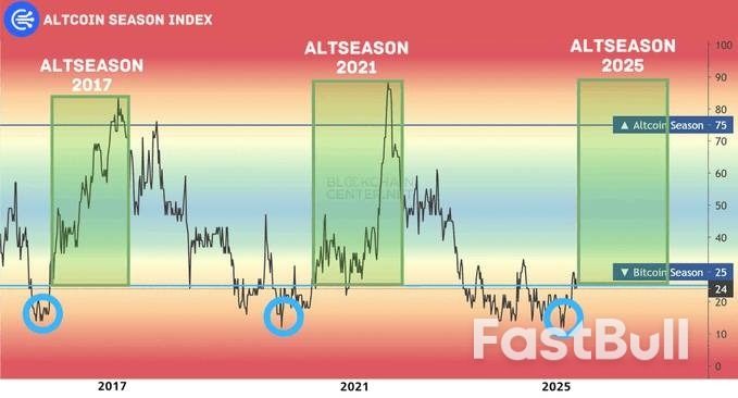 当前市场的一个重要特征是比特币主导地位(Bitcoin Dominance)的下降。加密分析师Satori观察到,在历史周期中,当比特币价格保持稳定或温和上涨,而其在加密总市值中的占比却出现下降时,这通常被视为资金从比特币向山寨币轮动的迹象,从而预示着「山寨币季」(Altcoin Season)的可能到来。