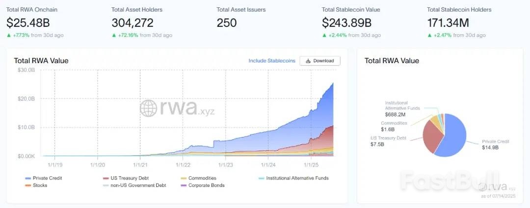据RWA研究平台rwa. xyz的最新数据,目前RWA总市场体量逾250亿美元,而贝莱德的预测更为乐观,到2030年,预计代币化资产的市值将达到10万亿美元,这也就意味着未来7年的潜在增长空间或高达40倍以上。