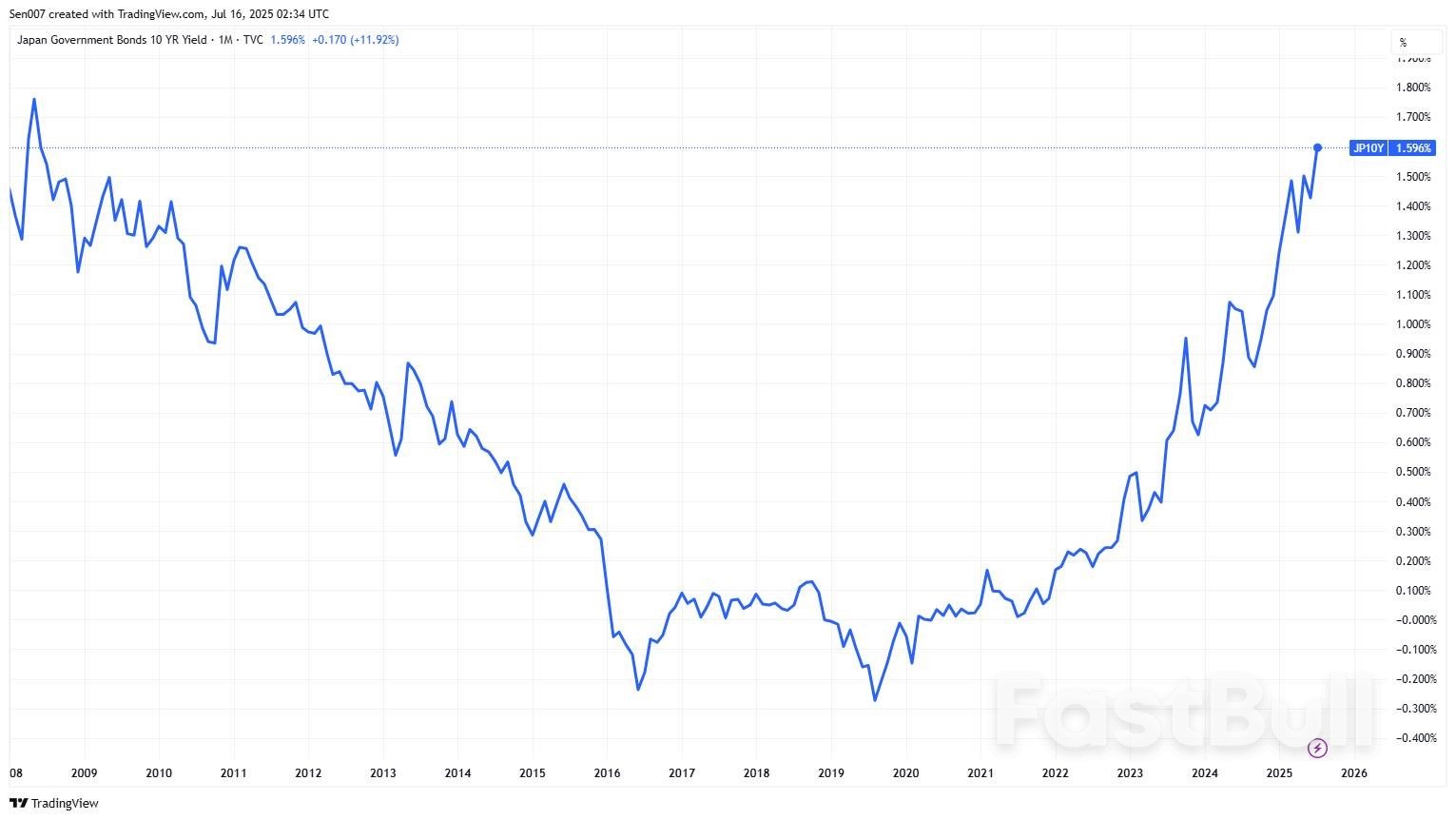 7月16日,日本10年期国债收益率涨至1.596%,创2008年以来新高。7月15日日本30年期国债收益率涨至3.200%,创1999年以来新高。